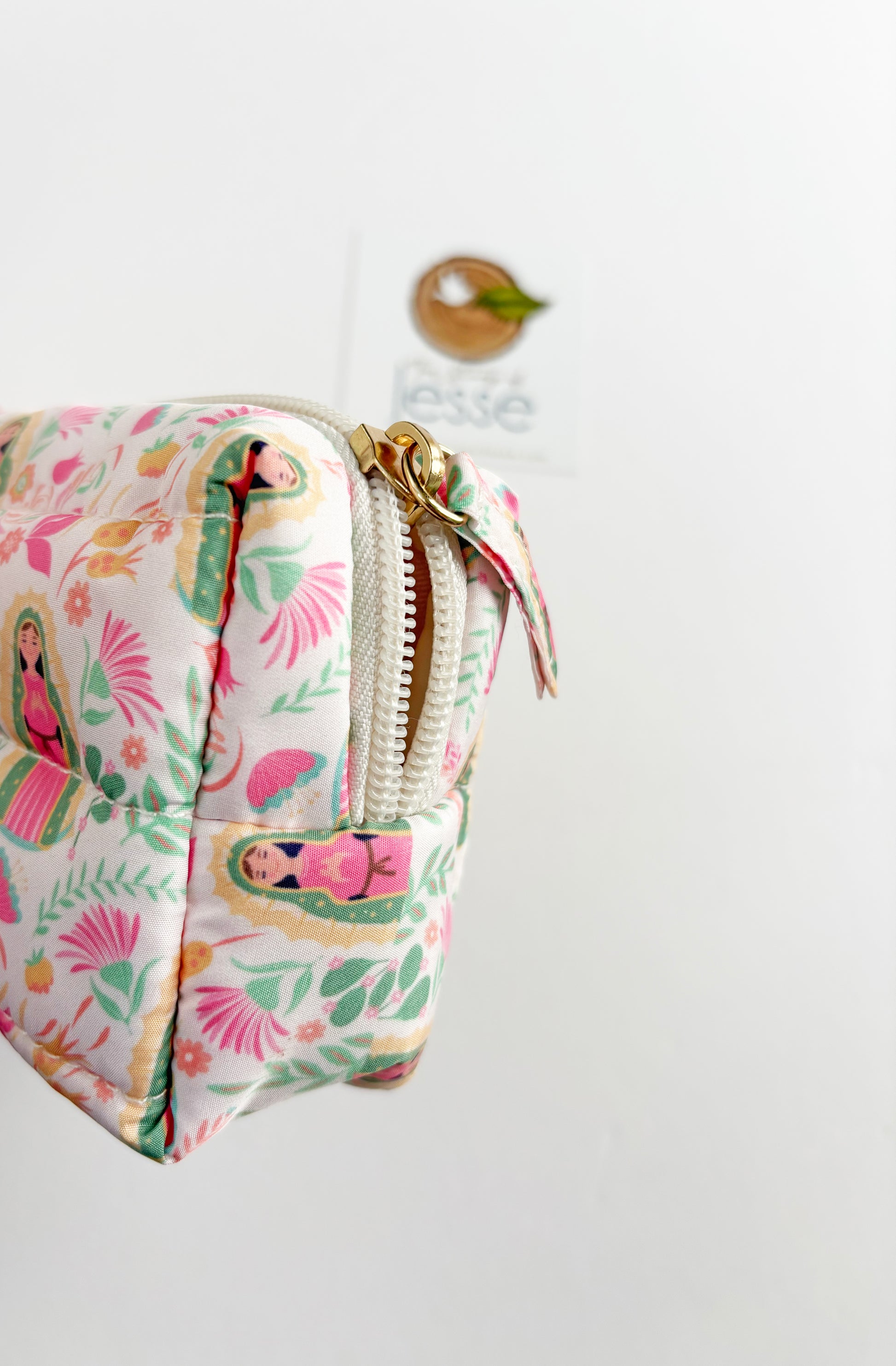 Our Lady of Guadalupe beige lightweight, waterproof puffer pouch